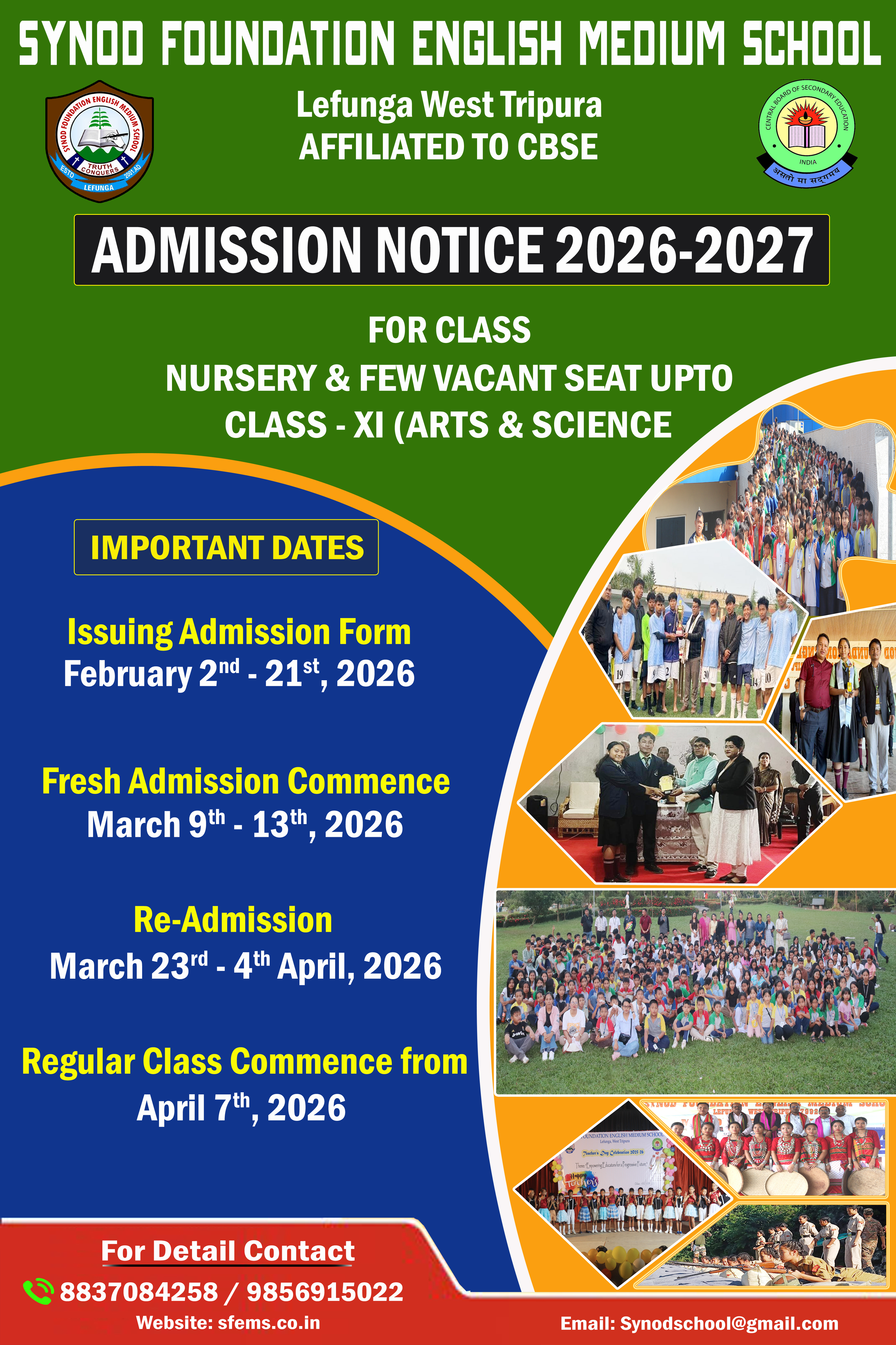 Admission Form for Accademic Year 2026-2027 will be Issued from 2nd February to 21st February 2026.